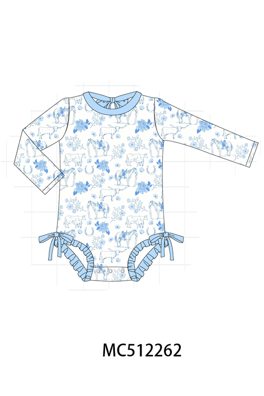 PO76 Blue bow embroidery seersucker swimsuit collection