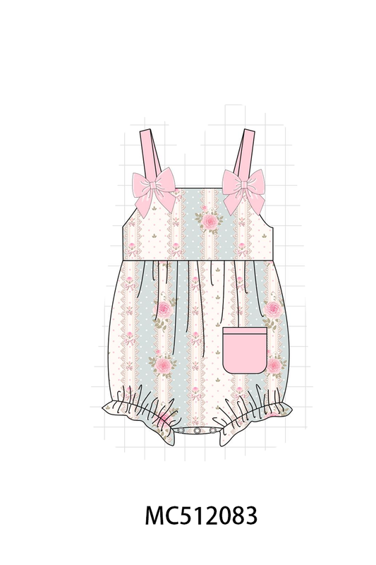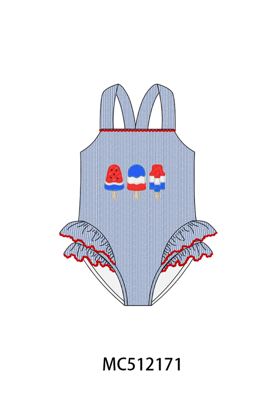 PO76 Blue bow embroidery seersucker swimsuit collection
