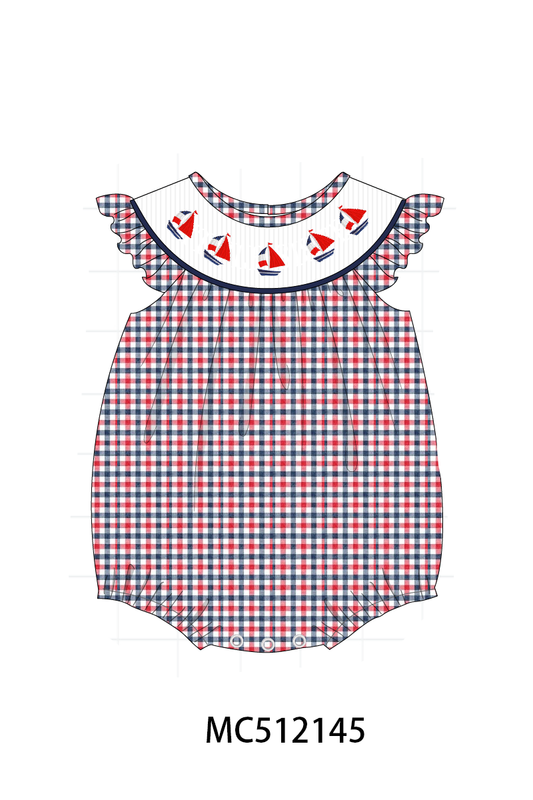 PO76 Navy Patriotic sailboat smocked gingham collection