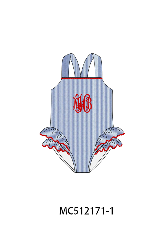 PO76 Blue monogram embroidery seersucker swimsuit collection