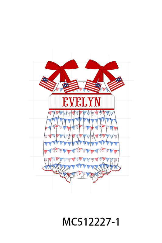 PO76 Blue bow embroidery smocked collection