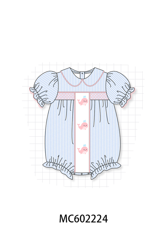 PO81 Blue stripe seersucker whale embroidery smocked collection