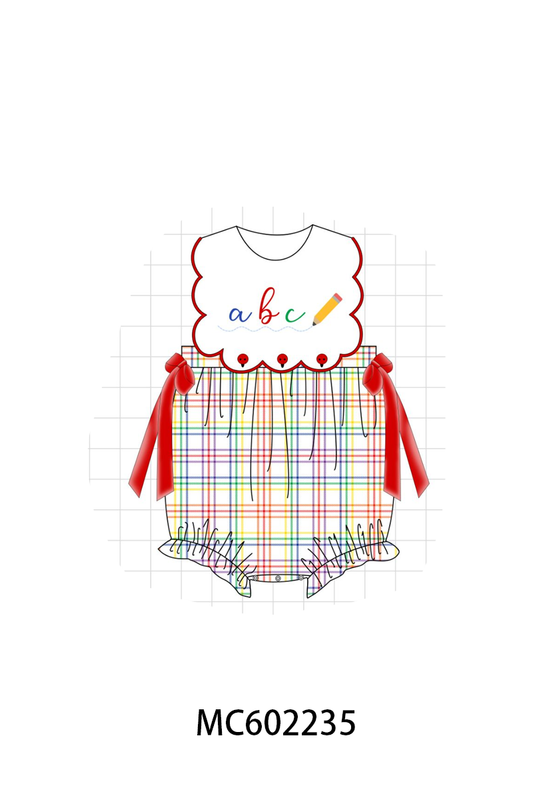 PO81 Red back to school pencil abc embroidery plaid collection