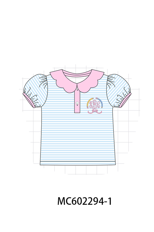 PO81 Pink&blue pencil monogram embroidery stripe collection