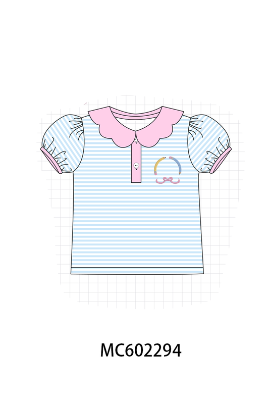 PO81 Back to school pencil apple bus embroidery stripe top collection