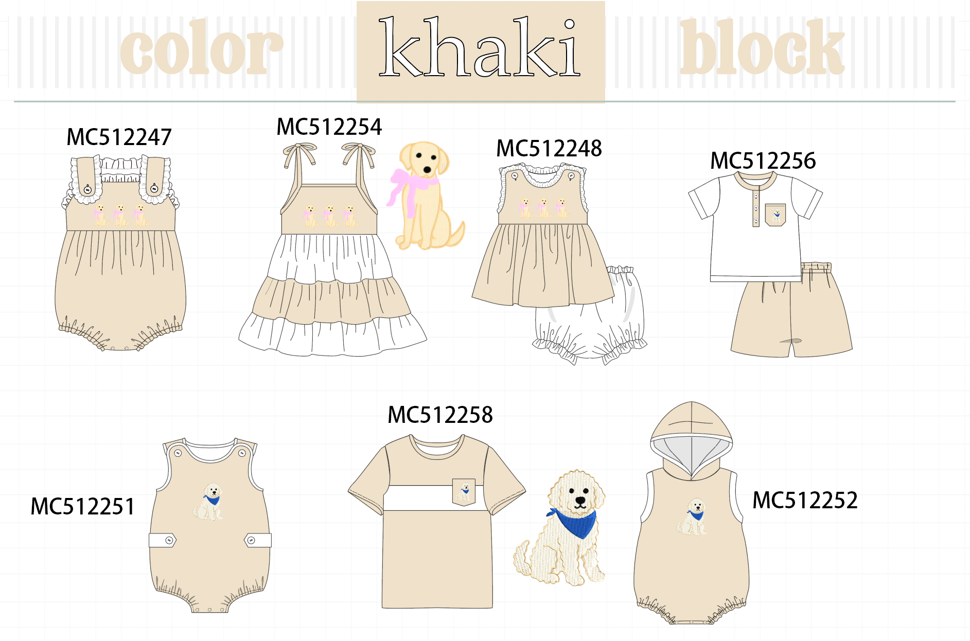 PO76 Khaki block puppy embroidery collection