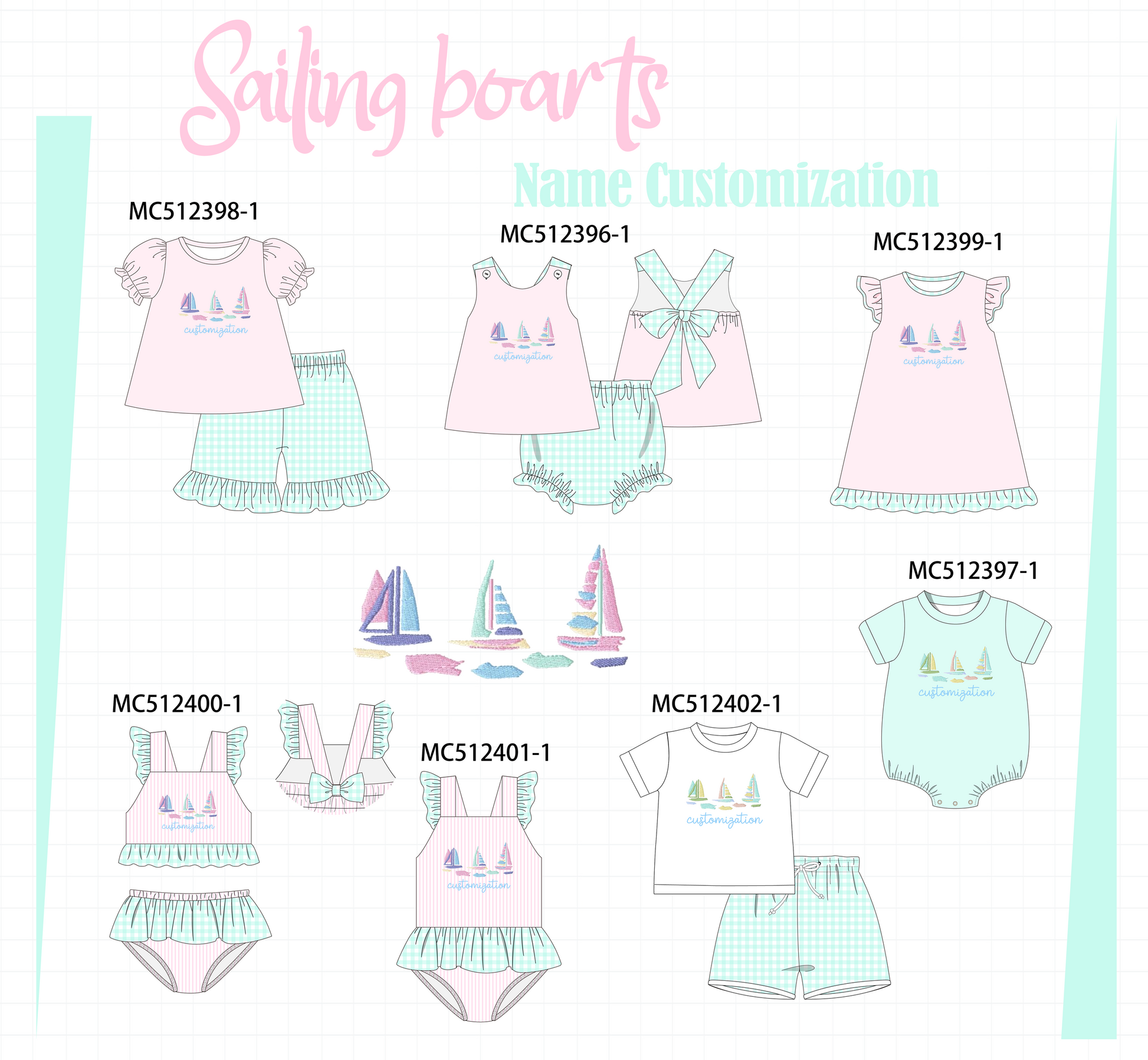 PO76 Pink sailboat monogram embroidery collection