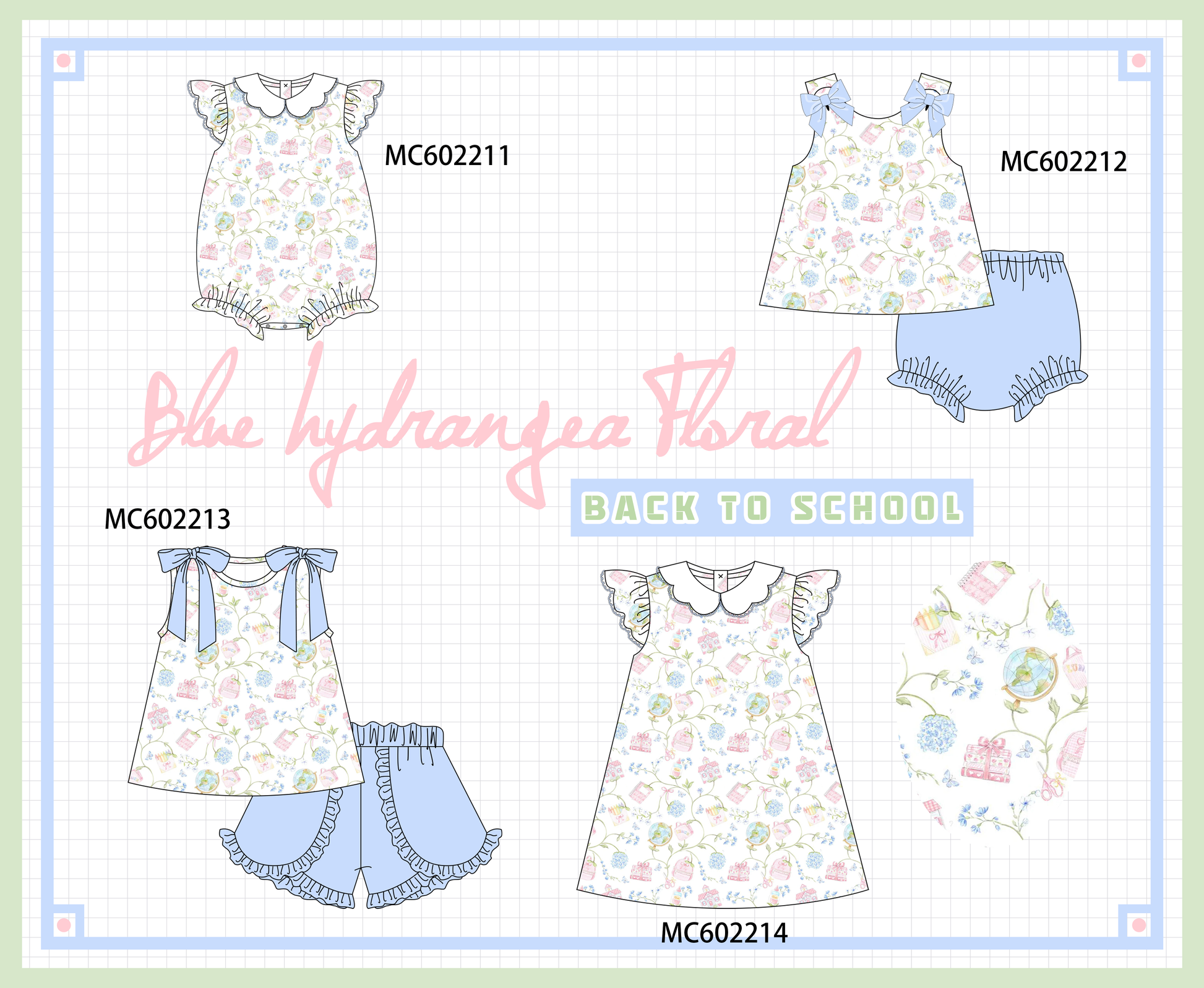 PO81 Blue hydrangea floral ruffle collection
